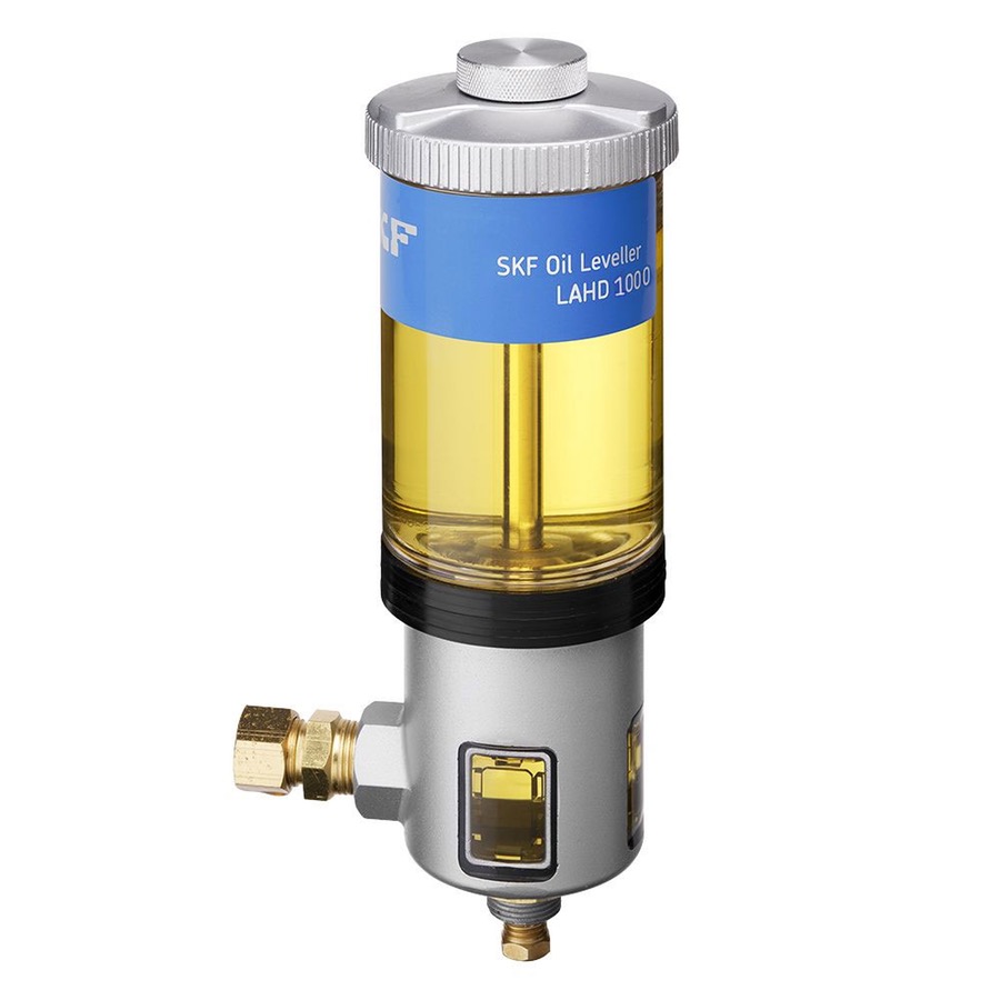 Zařízení pro vyrovnávání hladiny oleje se skládá ze dvou propojených, nad sebou umístěných olejových nádrží. Spodní nádrž je v přímém styku s mazaným zařízením, hladina oleje tedy dosahuje do stejné výšky jako uvnitř aplikace. Přímý kontakt spodní nádrže s okolním prostředím zajišťuje odvzdušňovací trubice. Vrchní nádrž je vzduchotěsná nádoba naplněná olejem na doplnění. Vrchní a spodní nádrž jsou přímo propojeny prodlouženým hrdlem, které je ponořeno do oleje ve spodní nádrži. Olej může přetékat pouze z vrchní nádrže do spodní, když se hladina ve spodní nádrži sníží pod stanovenou úroveň. Současně ze spodní nádrže do vrchní uniká prodlouženým hrdlem vzduch. SKF dodává dvě různé velkosti LAHD 500 s nádrží o objemu 500 ml a LAHD 1000 s nádrží o objemu 1000 ml.